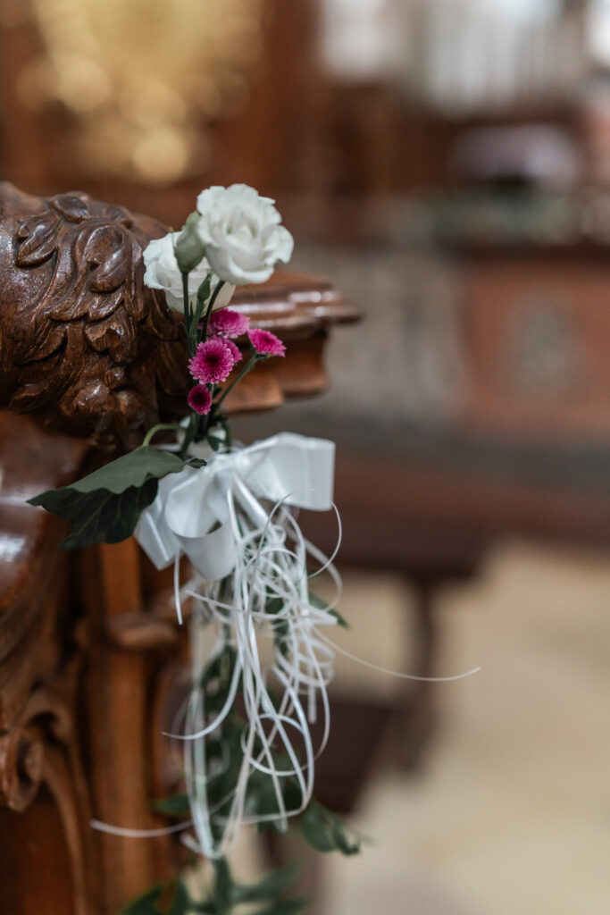 Wie ihr die Kirche dekorieren möchtet ist im Normalfall euch überlassen. Besser ist es natürlich trotzdem mit der Kirche Rücksprache zu halten. Viele bedienen sich an schönen Blumen an den Bänken, geschmückt mit Schleifen und anderen kleinen Elementen. Auch werden oft Schilder und Fotos vor der Kirche aufgestellt um den Gästen den richtigen Weg zu weisen.